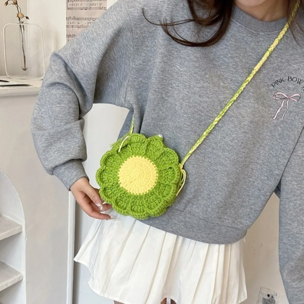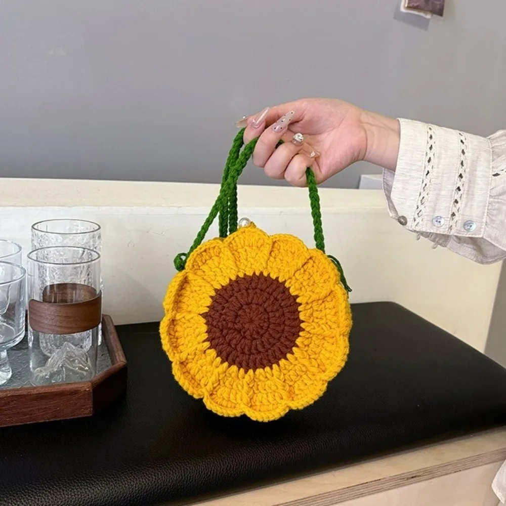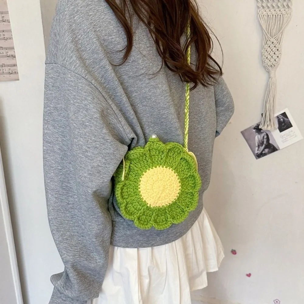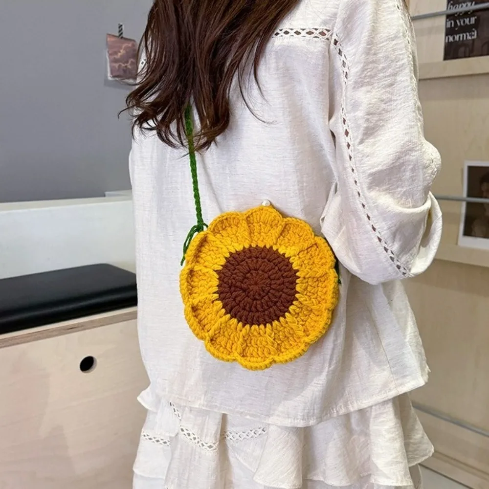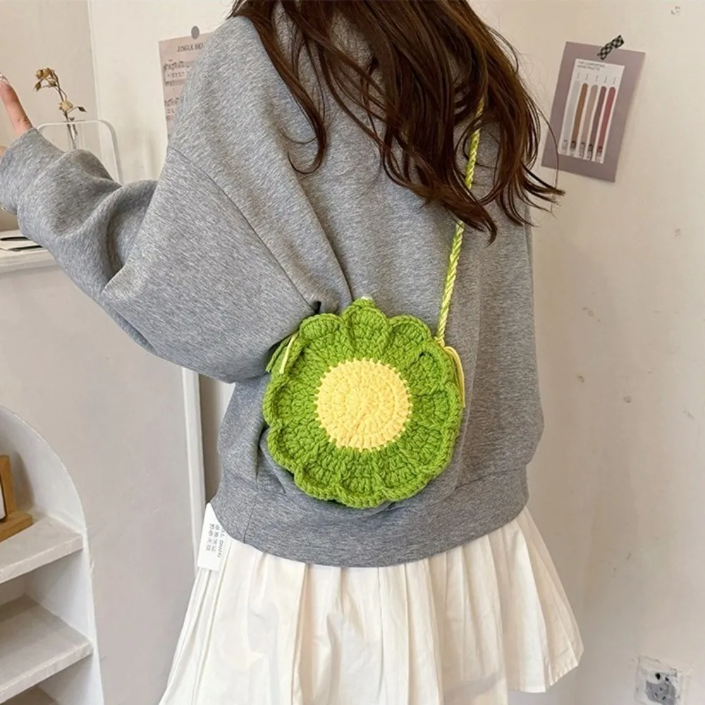 Charming Casual Knitted Sunflower Weave Crossbody Bag for Toddlers - Perfect Crochet Flower Shoulder Bag!