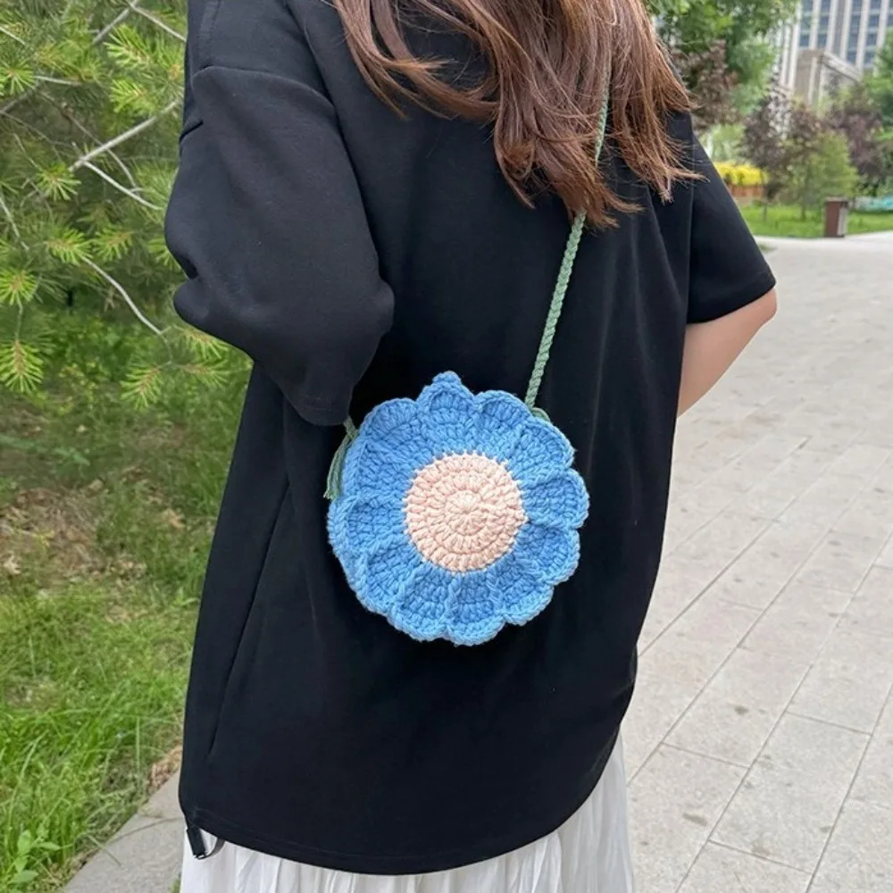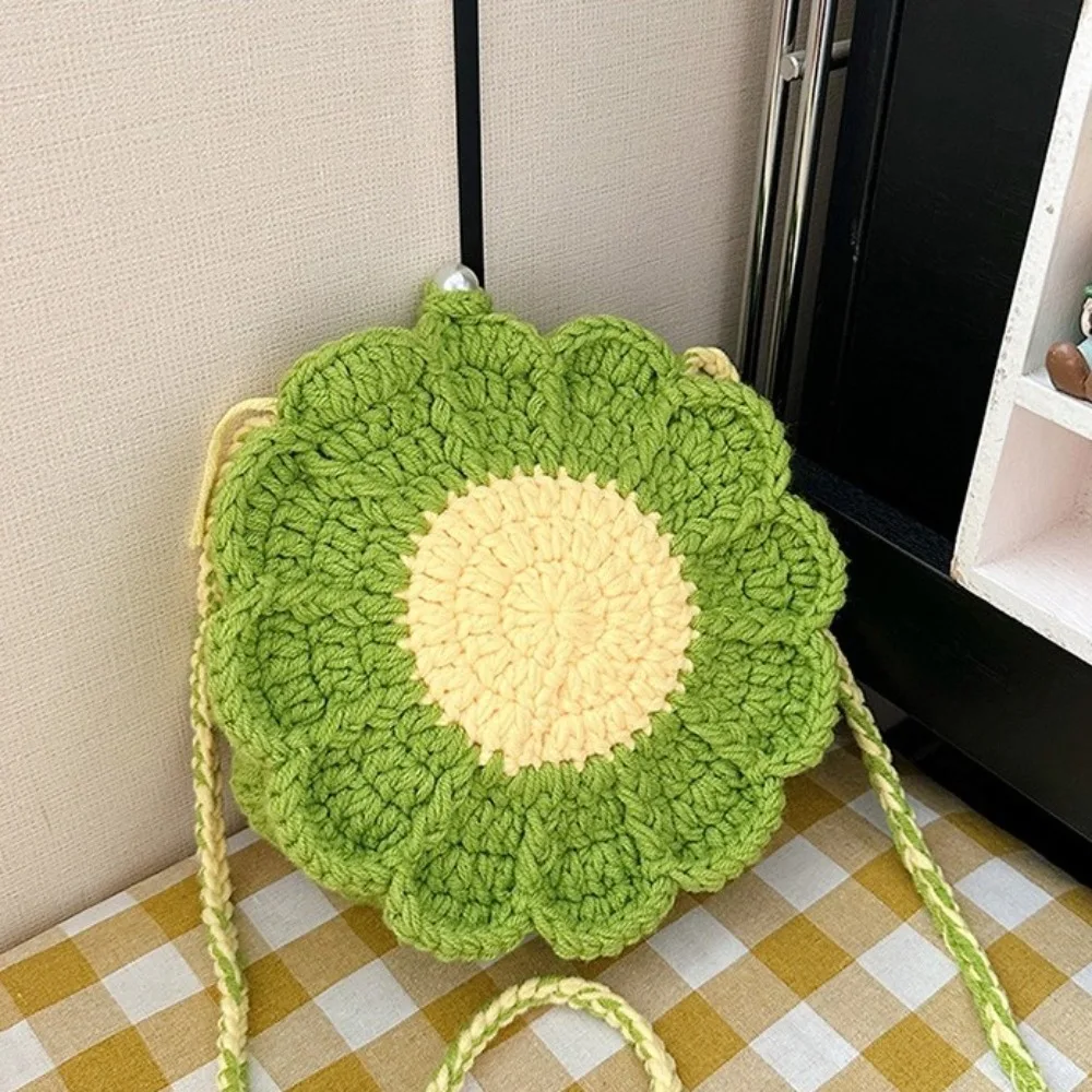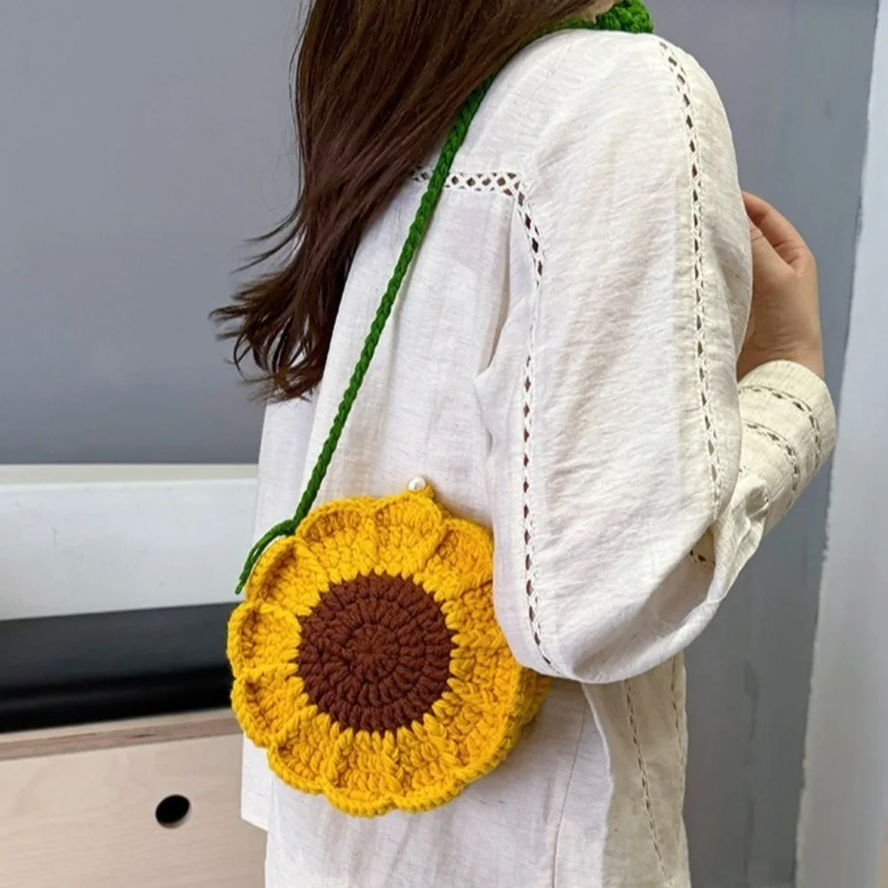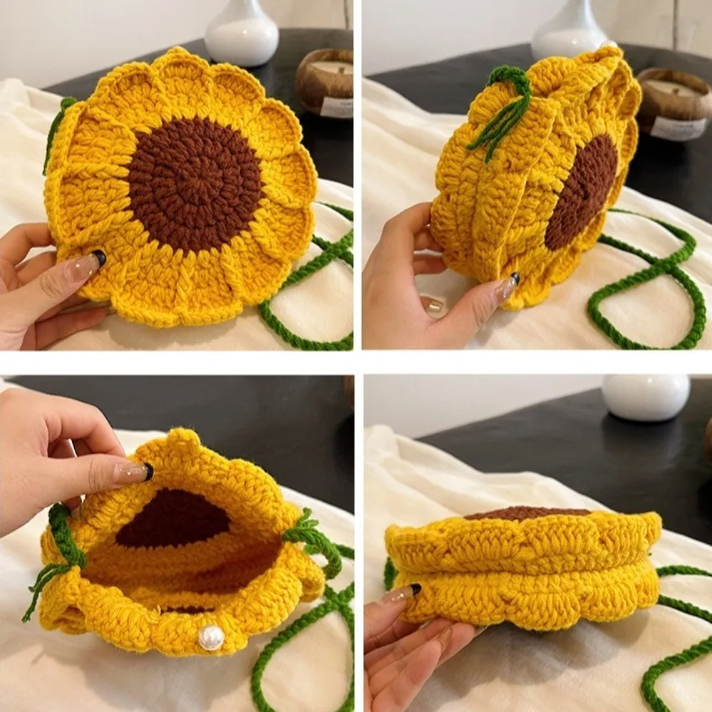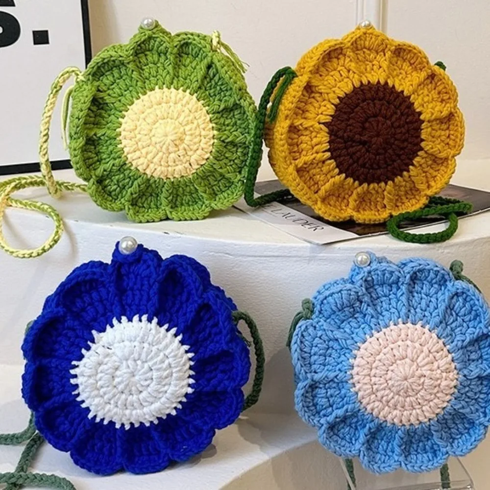 Charming Casual Knitted Sunflower Weave Crossbody Bag for Toddlers - Perfect Crochet Flower Shoulder Bag!