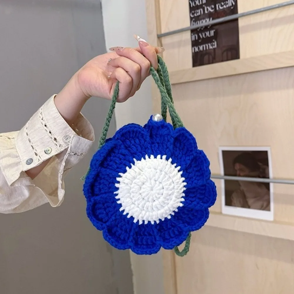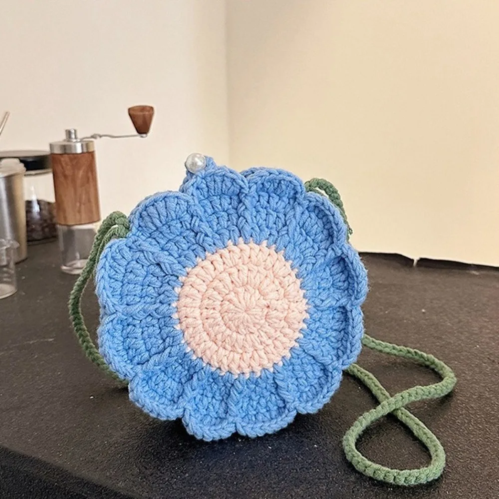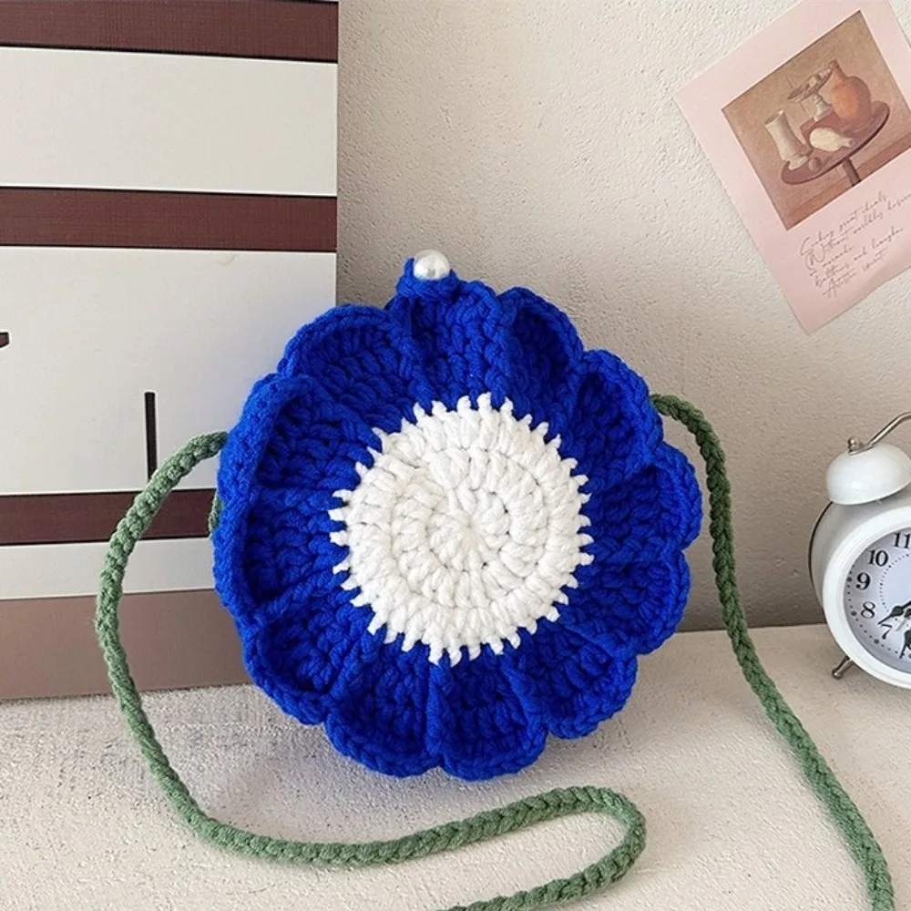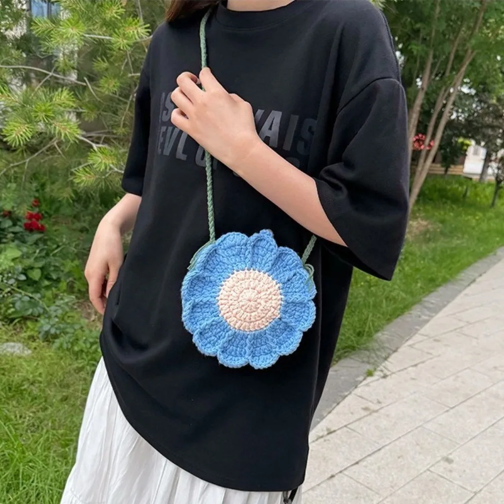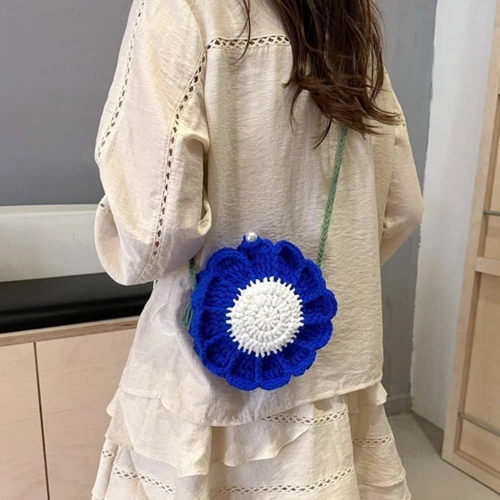 Charming Casual Knitted Sunflower Weave Crossbody Bag for Toddlers - Perfect Crochet Flower Shoulder Bag!
