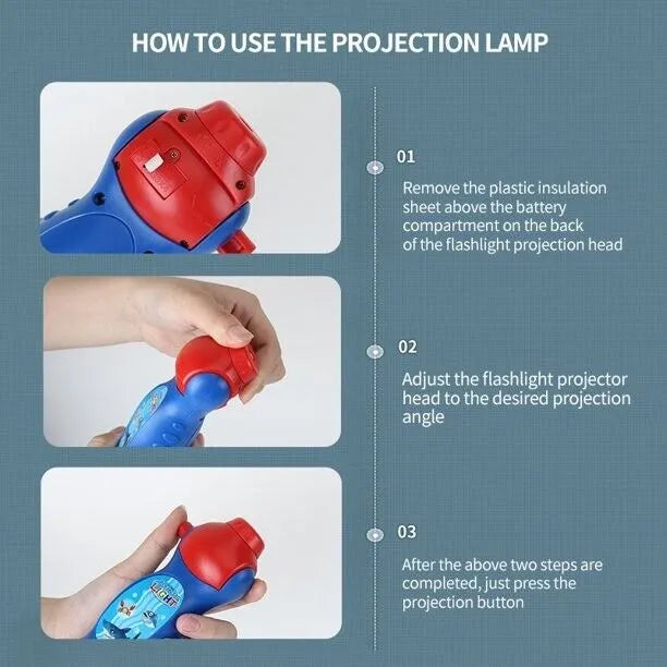 Kids Story Projection Flashlight – 24 Image Slide Projector Make bedtime and playtime magical with this fun story projection flashlight! With 24 colorful image slides, kids can project animals, vehicles, sea creatures, and cute characters onto walls and ceilings. Perfect for storytelling, calming routines, learning, and imagination play.